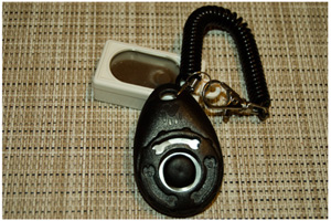 A clicker is a small plastic/metal device that makes a “click” sound when pressed. Although some people think that it is a “magic” button, it is merely a communication system between us and our animal, more precisely, it allows us to explain to our dog which behavior (or part of the behavior) he is getting rewarded for. In animal or dog training circles a clicker is scientifically known as: